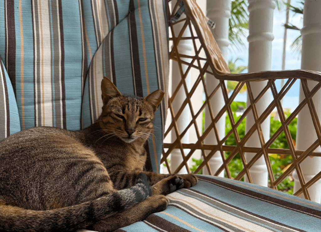 - Befriend a cat. This is the one thing on this list Cole did not do, that after this visit I would add if the book was still in edit stage. The little sweetie pictured below found us on our first night here–more specifically, she found my friend Amy, who never met an animal she didn’t want to take home, to provide plenty of kitty cuddle time and three square meals a day for the duration of our trip. Cats, stray or homed, are everywhere. The friendliest cats I’ve encountered, just like the people.